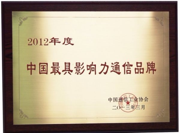 产品名称: 2012年度中国最具影响力通信品牌 |